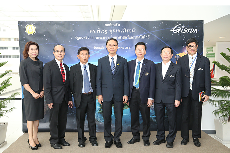 วันนี้ (16 ตุลาคม 2557) เวลา 12.30 น ดร.พิเชฐ ดุรงคเวโรจน์ รัฐมนตรีว่าการกระทรวงวิทยาศาสตร์และเทคโนโลยี ให้เกียรติตรวจเยี่ยมการปฏิบัติงาน และมอบนโยบายการดำเนินงานต่อคณะกรรมการบริหาร และ คณะผู้บริหารของสำนักงานพัฒนาเทคโนโลยีอวกาศและภูมิสารสนเทศ สทอภ. หรือ GISTDA โดยจะเน้นการใช้เทคโนโลยีดาวเทียมสำรวจและวิธีการใช้แผนที่ ที่ทันสมัยในด้านต่างๆ เพื่อการแก้ไขปัญหาและพัฒนาประเทศ ณ สำนักงานพัฒนาเทคโนโลยีอวกาศและภูมิสารสนเทศ (GISTDA) ศูนย์ราชการเฉลิมพระเกียรติ 80 พรรษา 5 ธันวาคม 2550 แจ้งวัฒนะ