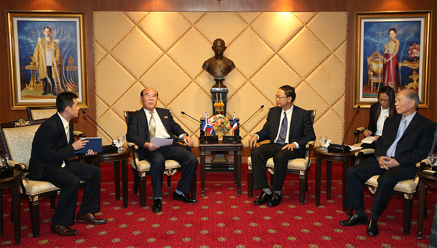 วันนี้ 17 ตุลาคม 2557 เวลา 13.30 น. ดร.พิเชฐ ดุรงคเวโรจน์ รัฐมนตรีว่าการกระทรวงวิทยาศาสตร์และเทคโนโลยี พร้อมคณะ ให้การต้อนรับ H.E. MR. MUN SONG MO (นายมุน ซง โม) เอกอัครราชทูตสาธารณรัฐประชาธิปไตยประชาชนเกาหลี ในโอกาสเข้าเยี่ยมคารวะและแสดงความยินดีในโอกาสที่ ท่าน รมว.วท. เข้ารับตำแหน่งใหม่ ณ ห้องพระจอมเกล้า ชั้น 4 อาคาร สป.วท.