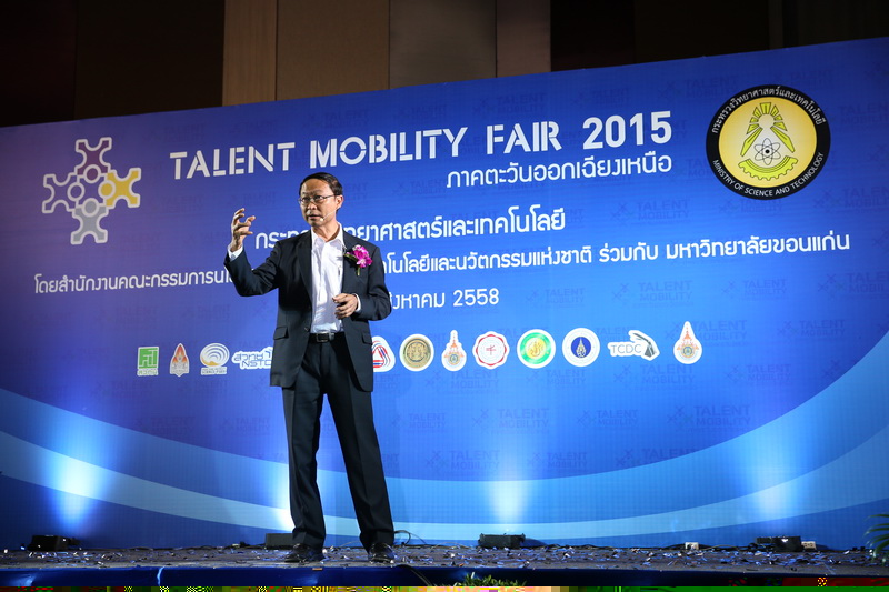 หน้าหลัก สื่อ สิ่งพิมพ์ เอกสารเผยแพร่ คลังภาพกิจกรรม กระทรวงวิทย์จัดใหญ่ “Talent Mobility Fair 2015 ภาคตะวันออกเฉียงเหนือ” ด้าน ม.ขอนแก่น ขานรับทาเล้นโมบิลิตี้ ออกระเบียบเอื้ออาจารย์-นักวิจัยไปเอกชน นำร่องยกระดับขีดความสามารถเอกชนอีสาน
